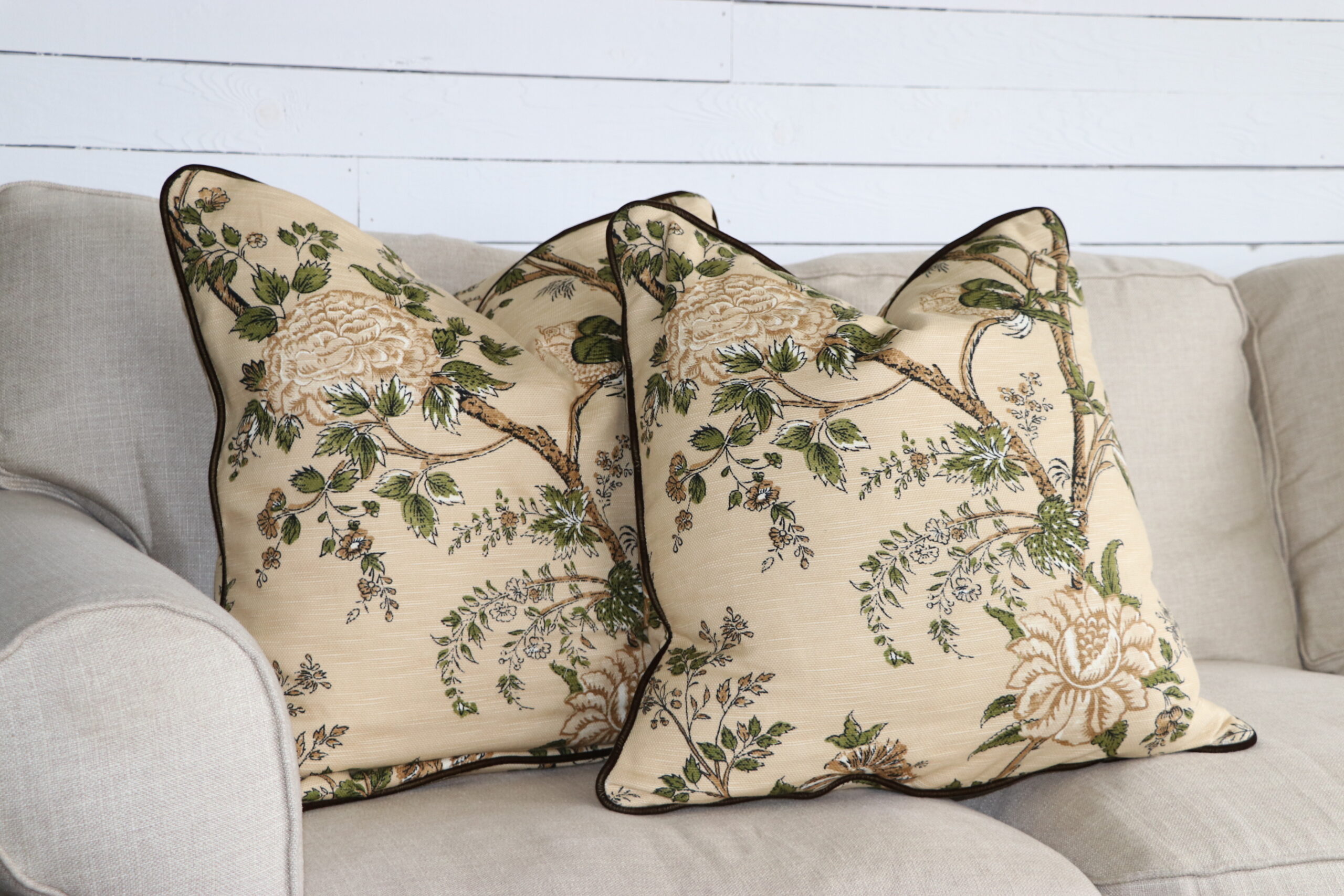 Over the years I’ve invested in high quality, down pillow inserts only in all sizes ranging from 16×16 to 24×24 and everything in between. I also have a few different size lumbar inserts that work great for a bed or a side chair.